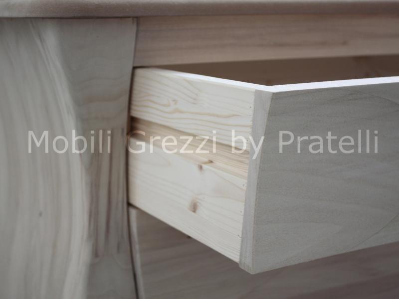 Il mobile è costruito in legno massello di pioppo, il piano è in Mdf, particolarmente indicato per le laccature.